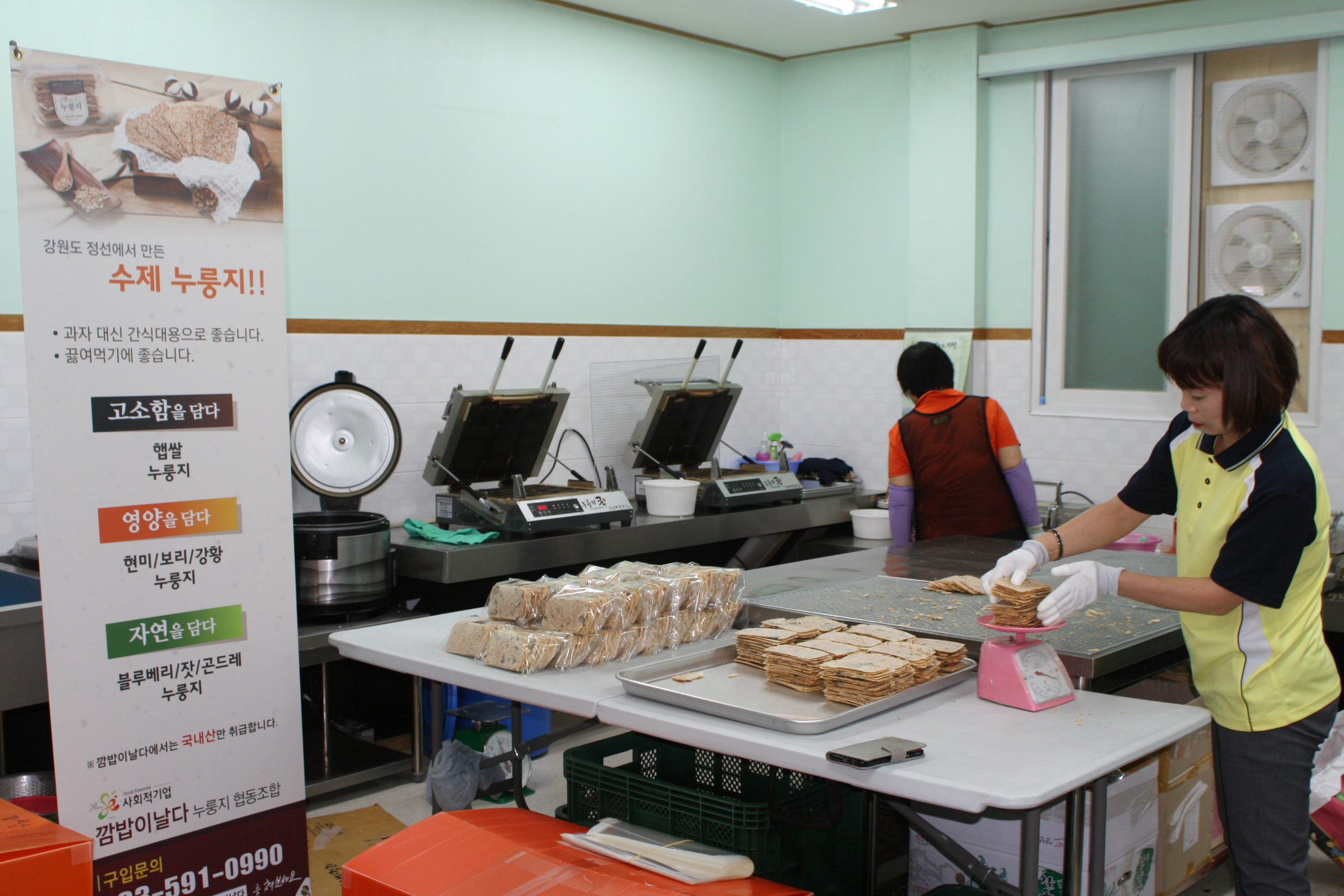 춘천 소재 도로환경개선 업체 ‘지혜안전주식회사(이하 지혜안전)’와 정선 수제누룽지 생산업체 ‘깜밥이날다누룽지자활협동조합(이하 깜밥이날다)’이 바로 그 주인공들입니다. 지혜안전주식회사는 재소자 및 출소자에게, 깜밥이날다는 단(斷)도박중독자에게 일할 수 있는 기회를 제공함으로써 신체적·정신적·재정적 취약계층인 이들의 사회복귀와 정착, 자립을 꾸준히 돕고 있습니다.