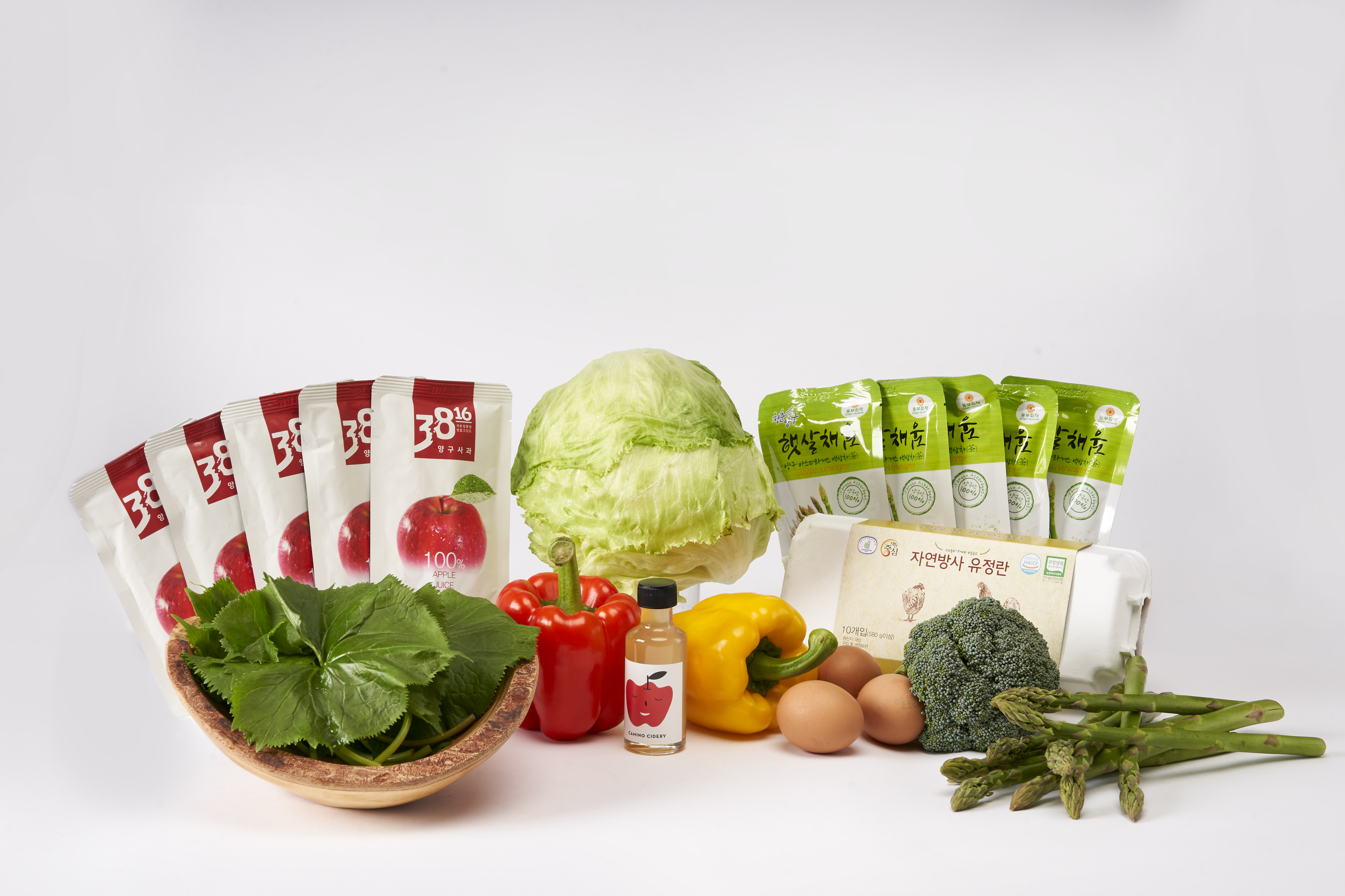 또한 아스파라거스를 활용한 김밥, 닭 양념구이, 식빵 등을 선보이거나, 청정 양구의 여러 농산물과 함께 꾸러미 상품으로 구성해 저렴하게 판매하기도 했습니다. 현장에서는 양구사과향토사업단의 꾸러미 상품과 더불어 상큼한 맛과 향이 돋보이는 사과즙 무료 시음도 큰 호응을 얻었습니다.