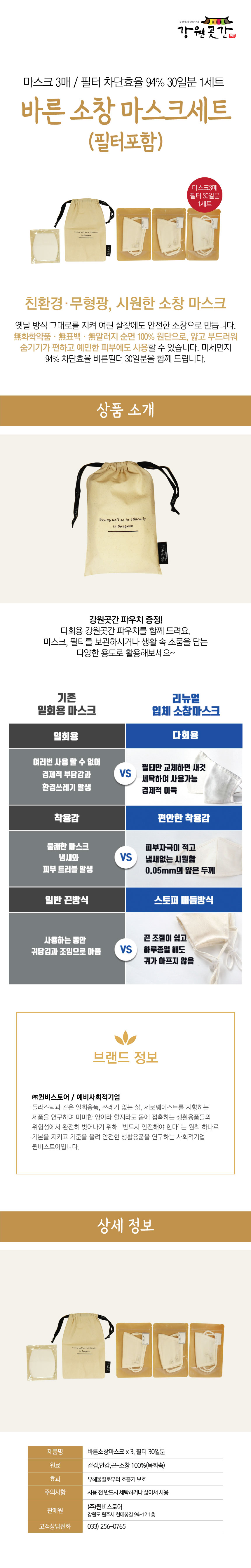 '바른 소창 마스크 세트'는 강원도 사회적경제 상품을 판매하는