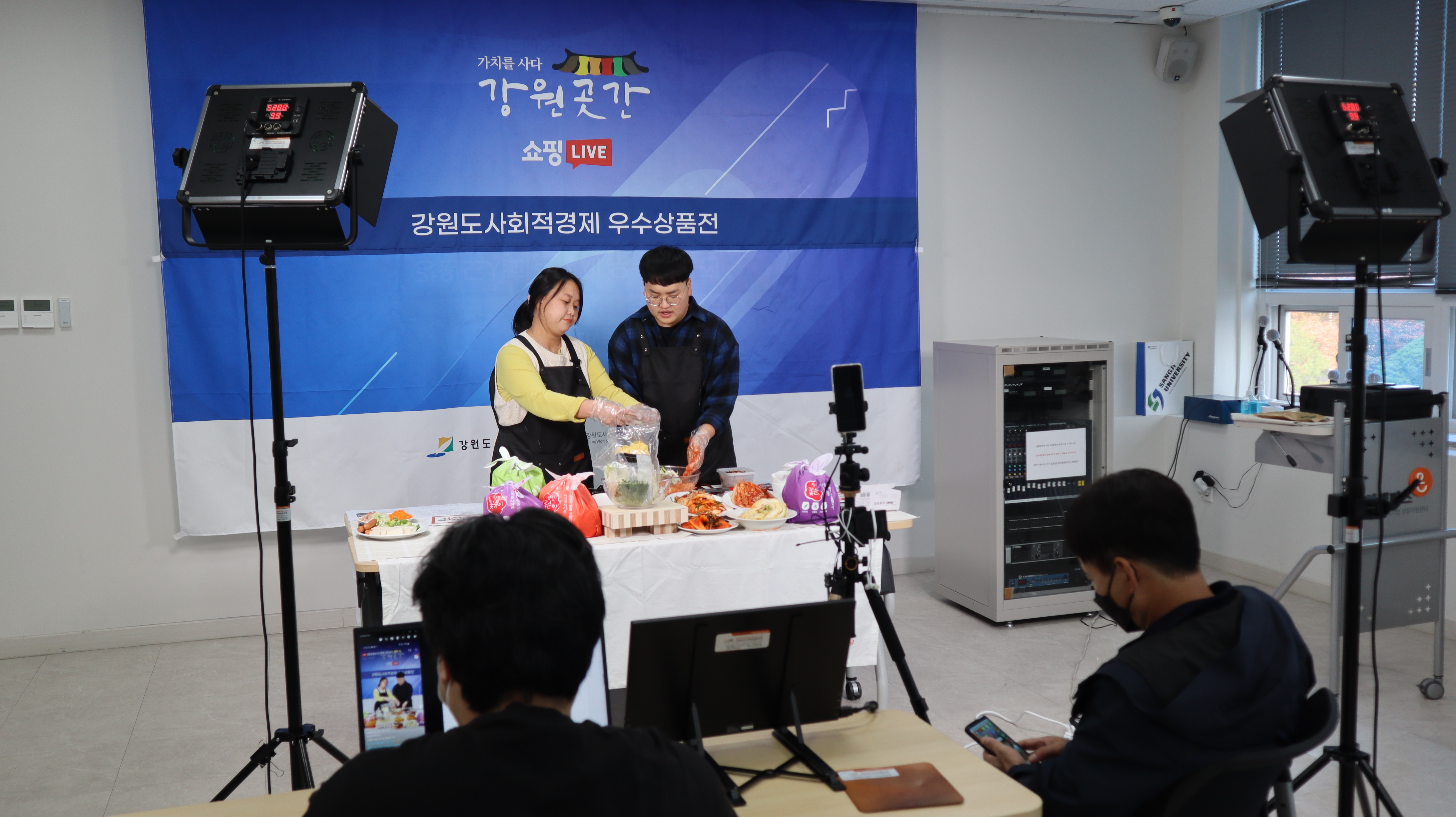 기업들의 좋은 반응 덕분에 올해도 라이브커머스 사업 분야를 기획할 수 있었어요. 지난해 경험을 바탕으로 단점을 보완하기 위해 기획 단계부터 꼼꼼히 준비했어요. 특히 전문 쇼호스트가 아닌 강원도에 거주하는 거주민이 쇼호스트가 되어 강원곳간 상품을 소개해 보고자 했어요. 외부 자원이 아닌 지속가능성을 담보하기 위해 교육을 통해 직접 발굴해 보자 했죠. 그렇게 발굴된 강원곳간 쇼호스트 4명 중 사회적경제인으로서 참여하신 분들이 함께 자리한 두 분이고, 11월 말까지 강원곳간 쇼호스트로 활약해 주실 예정입니다.