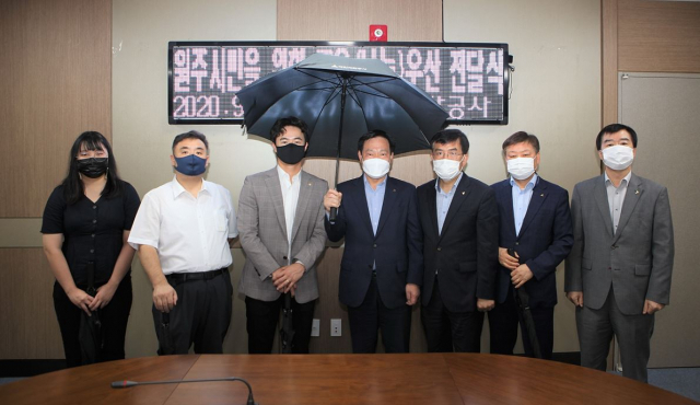 올해는 원주좋은변화연구회 공유우산 팀이 큰 주목을 받았어요. 이 팀은 도시열섬현상 저감 효과를 얻기 위한 공유우산 프로젝트를 진행했는데요. 무더운 여름, 공유우산으로 그늘을 만들어 시민들의 체감온도를 낮추는 프로젝트였어요. 공유우산은 아파트 단지와 상지대학교 본관, 병원, 시장 등에 설치되었는데, 특히 원주혁신도시상인회와 중앙동문화거리상인회는 상인들이 직접 공유우산을 관리하고 있기도 해요. 원주 안에서 공유우산 프로젝트가 확장되면서 국민건강보험공단과 삼양식품 원주공장, NH농협은행 원주시지부 등 다양한 기관과 기업이 동참하고 있고요. ‘땡스우산기부데이’, ‘기부우산 시화전’, ‘원주시민 기부 우산 원주천 둔치 걷기대회’ 등 20여 차례의 공식 행사로 지역의 작은 문화축제를 만들어가고 있기도 해요.