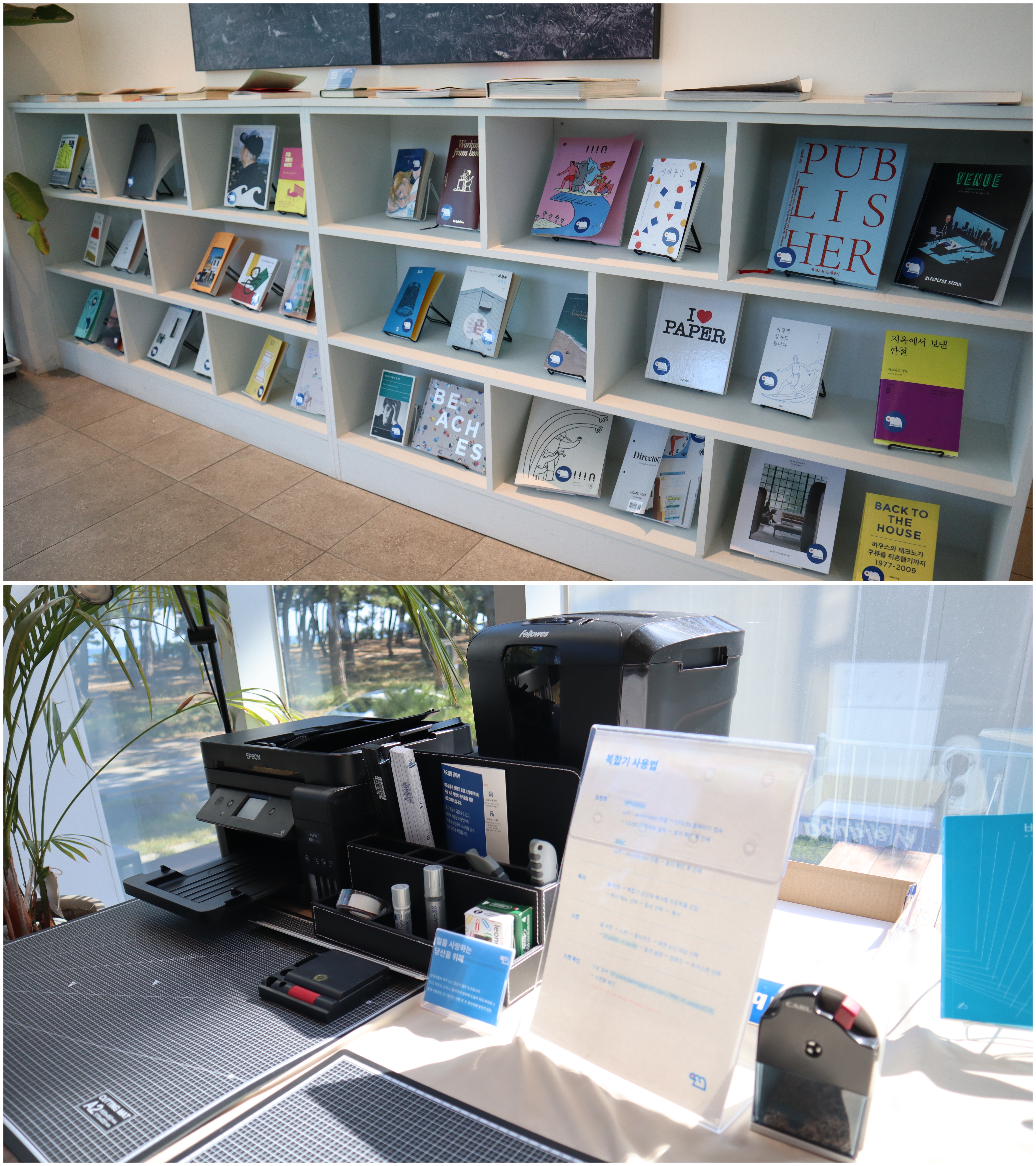 더웨이브컴퍼니는 강릉 송정동 소재 아비오호텔과의 협업으로 주 중(일요일~금요일)으로 운영되는 일로오션 프로그램을 운영하고 있습니다. 호텔에서 숙박하며 1층에 마련된 코워킹 스페이스에서 일과 휴양을 함께하는 프로그램으로, 바다와 솔숲이 펼쳐진 오션뷰를 즐기며 업무에 임할 수 있습니다. 해당 공간에는 업무에 필요한 사무용품과 복합기 등도 마련되어 있습니다. 특히, 일로오션 참여자만 사용할 수 있는 히든데스크는 파티션으로 공간이 분리되어 있어 누구에게도 방해받지 않고 업무에 보다 집중할 수 있습니다.