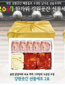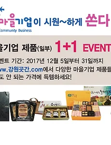 이벤트55 [작은 행운 큰 행복] 강원도 마을기업이 시원~하게 쏜다! 본격적인 겨울이 시작되었습니다. 강원도의 겨울과 함께하는 국가적인 큰 행사를 앞두고, 강원도 마을기업이 다시 없을 이벤트를 마련하였습니다. 1개 가격에 1개를 더 드리는 1+1 이벤트! 배송비까지 무료!! 12월 5일부터 강원곳간 온라인쇼핑몰에서 판매를 개시합니다. 15개 마을기업의 21개 품목을 1+1으로 드리는 이번 이벤트는 품목당 한정수량 25건! 이벤트 진행 기간 내라도 한정수량이 소진되면 구매가 불가능하오니 어떤 상품을 구매하실지 미리 찜해 두시고, 회원가입도 미리미리 해 두시는 센스!! ^^ 그럼, 이벤트로 만나보실 마을기업 상품들을 소개합니다! 기업명 상품명 소비자가 한계령웰빙영농조합 솔순라이스칩(4개묶음) 12,000 잡곡누룽지(2개묶음) 10,000 하추리영농조합 도리깨잡곡세트 4호 42.. 2017. 11. 30. [작은 행운 큰 행복] 11월 삼행시 짓고 간식 받자! [작은 행운 큰 행복] 쌀쌀한 겨울 따끈한 간식을 준비한 감사이벤트 찬바람이 불고 눈이 내리며 어느새 겨울이 성큼 다가왔습니다. 그래서 준비한 이번 이벤트 상품은 겨울철 마다 생각나는 간식! 긴긴 밤 출출한 배를 채울 수 있는 간식! 바로 따끈따끈한 찐빵입니다. 이번 이벤트의 상품인 어수리 찐빵은 ‘김삿갓협동조합’의 상품으로서 몸에 좋은 성분을 다량 함유하고 있는 어수리를 이용해 만든 것이 특징입니다. 특히 어수리는 당뇨병, 비만, 고지혈증 등의 예방과 치료에도 효과를 보이며 성인병을 앓고 있는 분들에게 많은 도움을 준다고 합니다. 이런 어수리가 포함되어 있는 찐빵은 식감이 좋고 부드러워 더욱 맛있습니다. 마지막으로 기계를 사용하지 않고 직접 손으로 만든 수제찐빵으로 기존찐빵과 달리 쫄깃쫄깃한 식감이 아.. 2017. 11. 30. [작은 행운 큰 행복] 10월 트리클라이밍 체험 이벤트 10월 이벤트 ‘나무위를 걷는 사람들’ 과 함께하는 10월 체험이벤트 열심히 일한 당신, 즐겨라! 이번 이벤트는 체험이벤트로, 바로 "트리클라이밍"입니다. 숲에서 하는 클라이밍, 트리클라이밍을 들어보셨나요? 트리클라이밍이란 숲속에서 나무를 이용해서 하는 이색 레저스포츠로 안전장비를 착용하고 나무를 직접 올라가 숲을 바라보며 자연을 체험하는 프로그램입니다. 남녀노소 누구나 할 수 있는 쉬운 프로그램부터, 도전의지가 불쑥불쑥 생기는 프로그램까지 다양하게 마련되어 있는데요, 이번 이벤트 참여대상은 "사회적기업"입니다. 인증 사회적기업이면 전국에 소재한 어느 기업이나 참여신청이 가능합니다. 바쁜 업무 탓에 제대로 야유회 한번 못 가본 기업, 이색 체험으로 으쌰으쌰 단합의 기운을 모으고 싶은 기업, 일상을 벗어나.. 2017. 10. 18. [작은 행운 큰 행복] 9월 이벤트_ 당첨자 발표 9월 한가위 이벤트 당첨자 발표 지난 9월 19일 부터 10월 10일까지 진행된 9월 한가위 이벤트의 당첨자를 발표합니다.이벤트에 참여해 주신 모든 분들께 진심으로 감사의 말씀을 드립니다. 9월 한가위 이벤트 당첨자 발표 중제산들꽃영동민 2017. 10. 11. [작은 행운 큰 행복] 9월 이벤트_풍성한 한가위를 더욱 풍성하게! [작은 행운 큰 행복] 9월 이벤트 풍성한 한가위를 더욱 풍성하게! 풍성한 한가위에 맛있는 먹거리가 빠질 수 없죠! 그래서 준비한 강원곳간의 특별이벤트! 한가위에 있었던 잊지 못할 사연을 남겨주시면 추첨을 통해 푸짐한 선물세트를 증정해 드립니다. 재밌었던 사연, 감동적인 사연 모두모두 환영이니 많은 참여 부탁드립니다. ^_^ 가장 중요한 상품!! 어떤 상품이 있는지 살펴볼까요? 착한 강원곳간의 제품들로 한가위 풍족한 선물꾸러미가 준비되었습니다! 선물세트 1호 양념황태구이와 더덕구이, 명태초무침, 낙지젓갈로 구성되어 있습니다. 보기만 해도 군침이 도는 밑반찬들이네요. 이 반찬들만 있다면 밥 두공기는 뚝딱! 밥도둑이 따로 없겠어요 ~! 선물세트 2호 춘천 닭갈비와 속초의 대게로 만든 그라탕입니다. 큼지막한 .. 2017. 9. 15. [작은 행운 큰 행복] 7월 이벤트_정답 공개 및 당첨자 발표 지난 7월 26일부터 8월 10일까지 진행된 [강원곳간 뽀틀애플 퀴즈!]의 정답과 당첨자를 발표합니다! 우선 정답 발표 나갑니다~ 1. 마마스팜의 뽀틀애플에는 1년 이상 자연발효 숙성한 전통 누룩 현미식초가 들어있어요. 2. 뽀틀애플에는 자연발효 모곡현초가 7 % 들어있어요. 3. 뽀틀애플은 국내산 사과만을 95 ℃로 착즙해서 설탕이나 합성비타민 없이도 사과의 달콤함과 현미식초의 새콤함을 살린 건강음료입니다. 정답은 누룩, 7, 95 였습니다! 당첨되신 분들 모두 축하드립니다! 아울러 이벤트에 참여해주신 모든 분들께 진심으로 감사의 말씀을 드립니다. 당첨되신 분들께는 이벤트 비밀댓글에 남겨주신 연락처로 개별 연락을 드릴 예정입니다. 8월 이벤트는 8월 셋째주에 진행됩니다. 많은 관심과 참여 부탁드립니다... 2017. 8. 11. 이전 1 2 3 4 ··· 10 다음